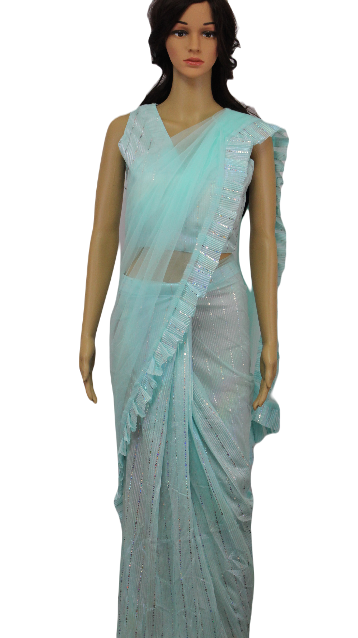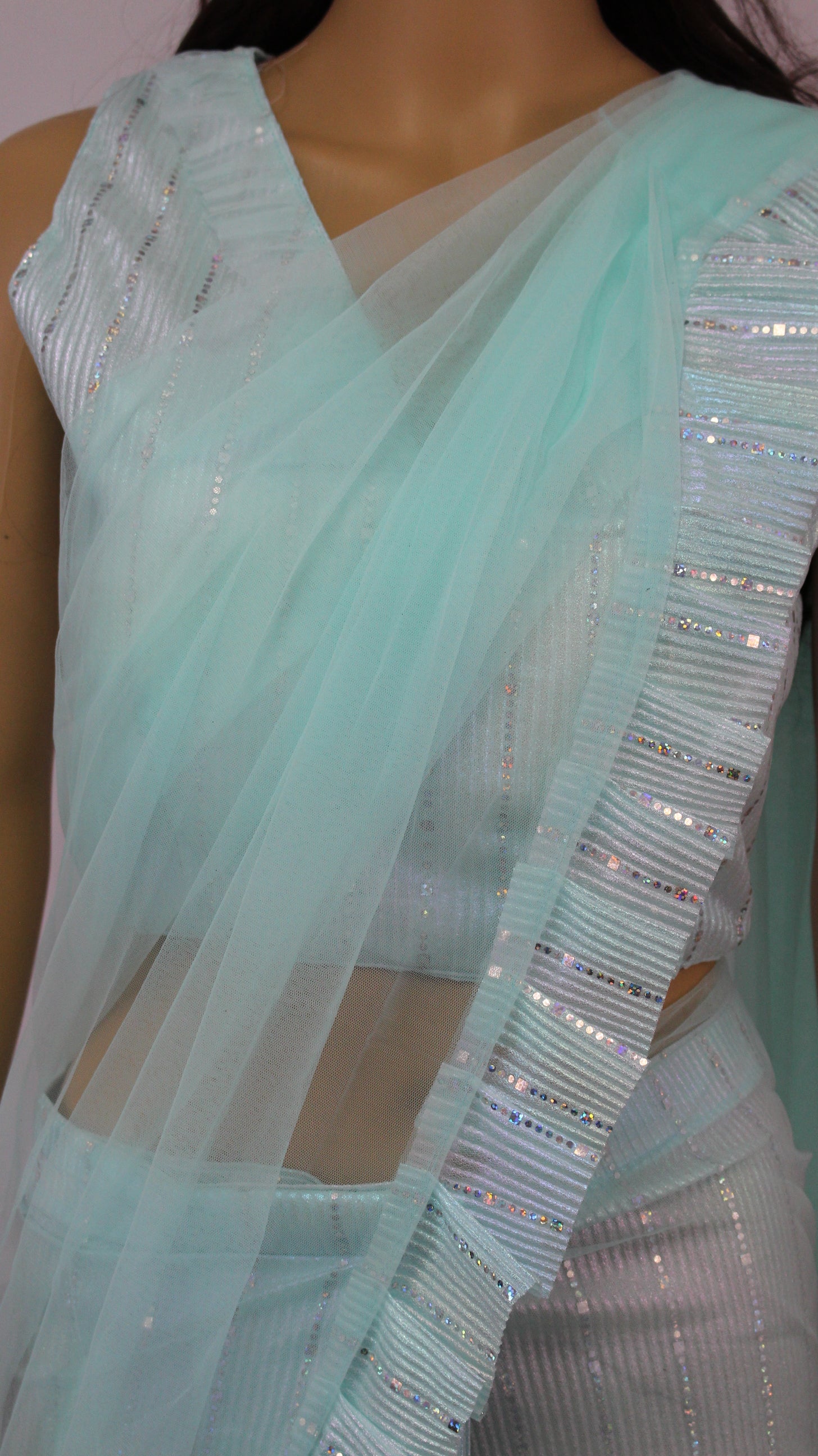 Aqua/Mint colored softnet saree