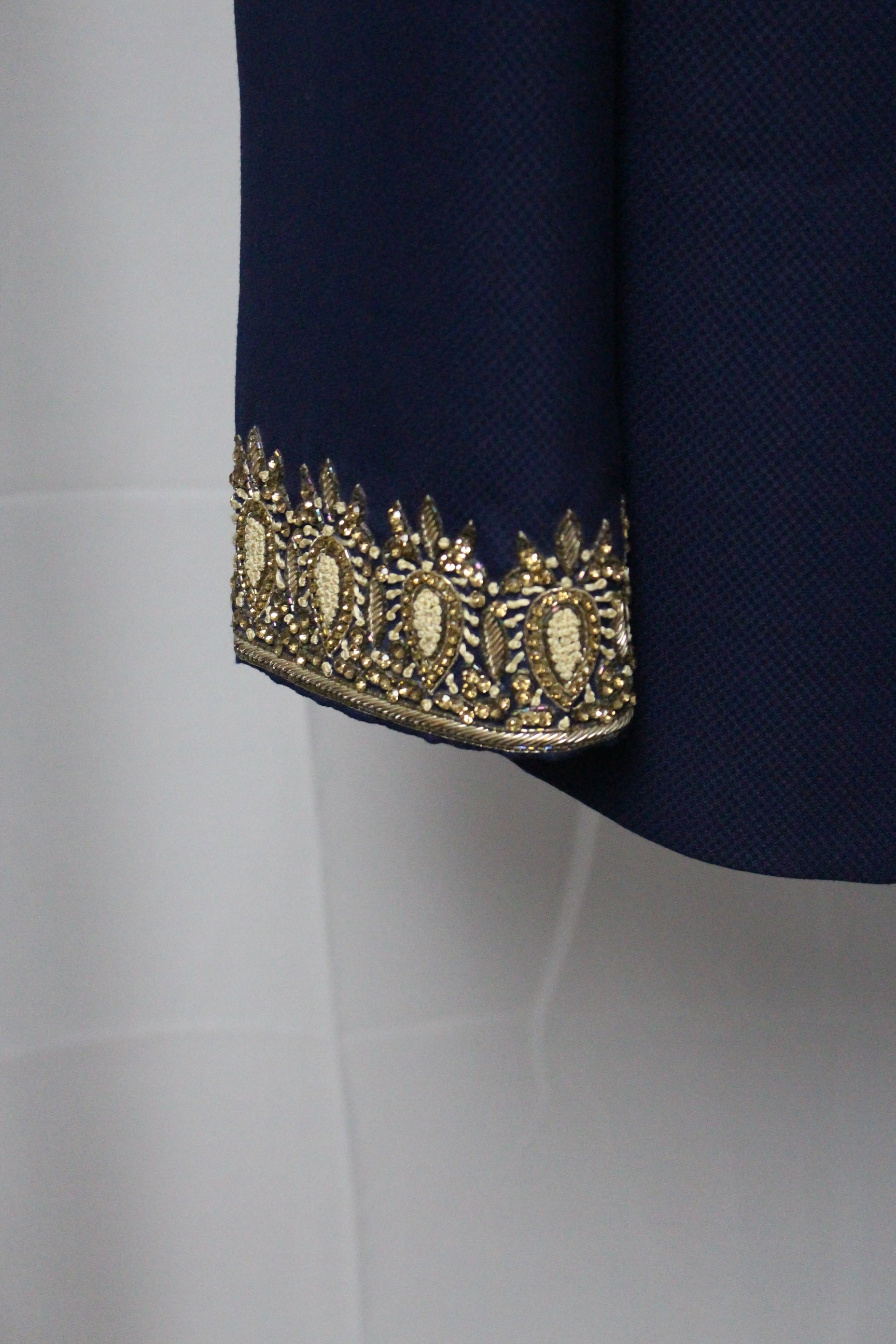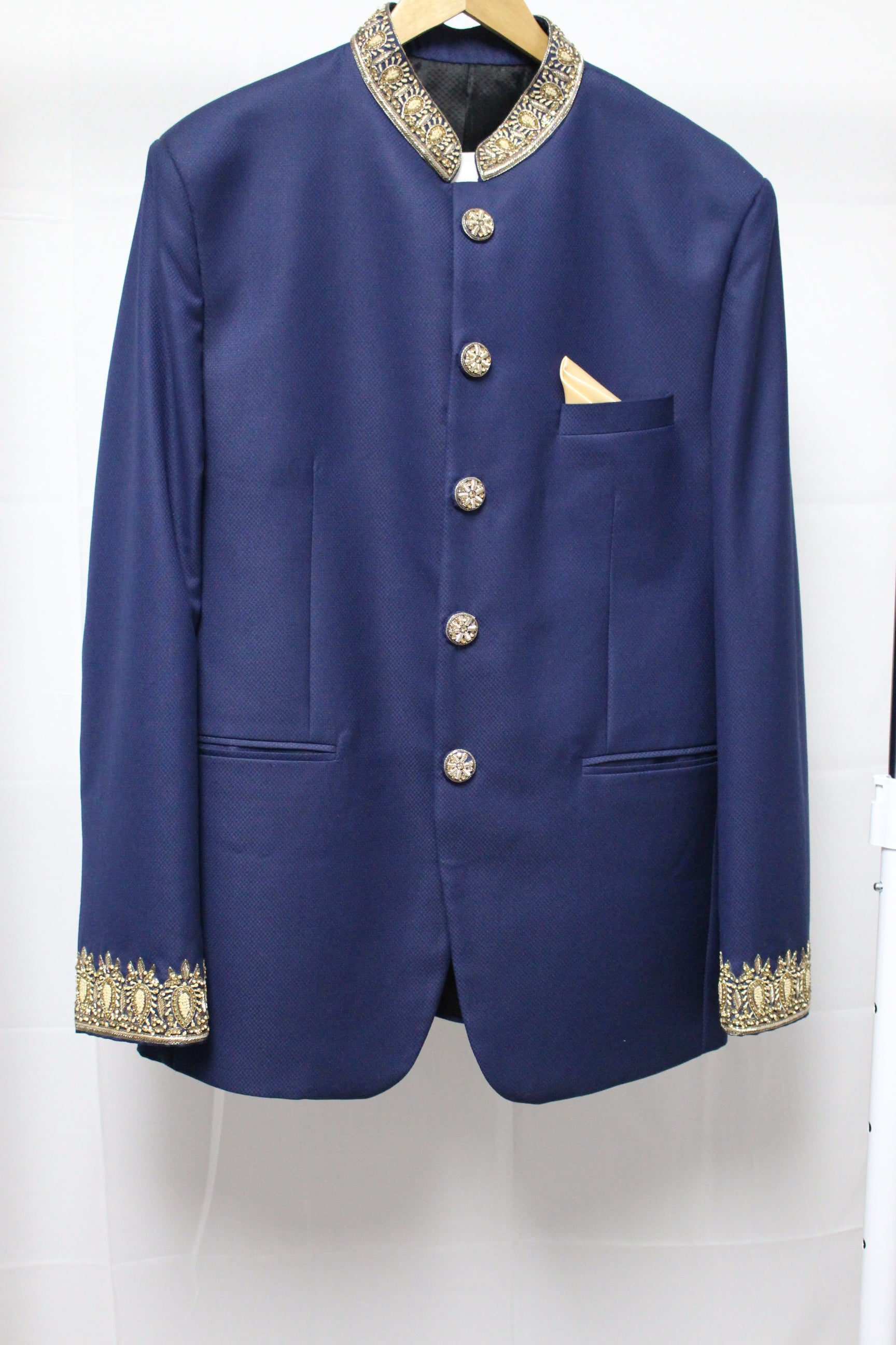 Azure Blue Long Suit with Hand Embroidered Collar and Cuffs
