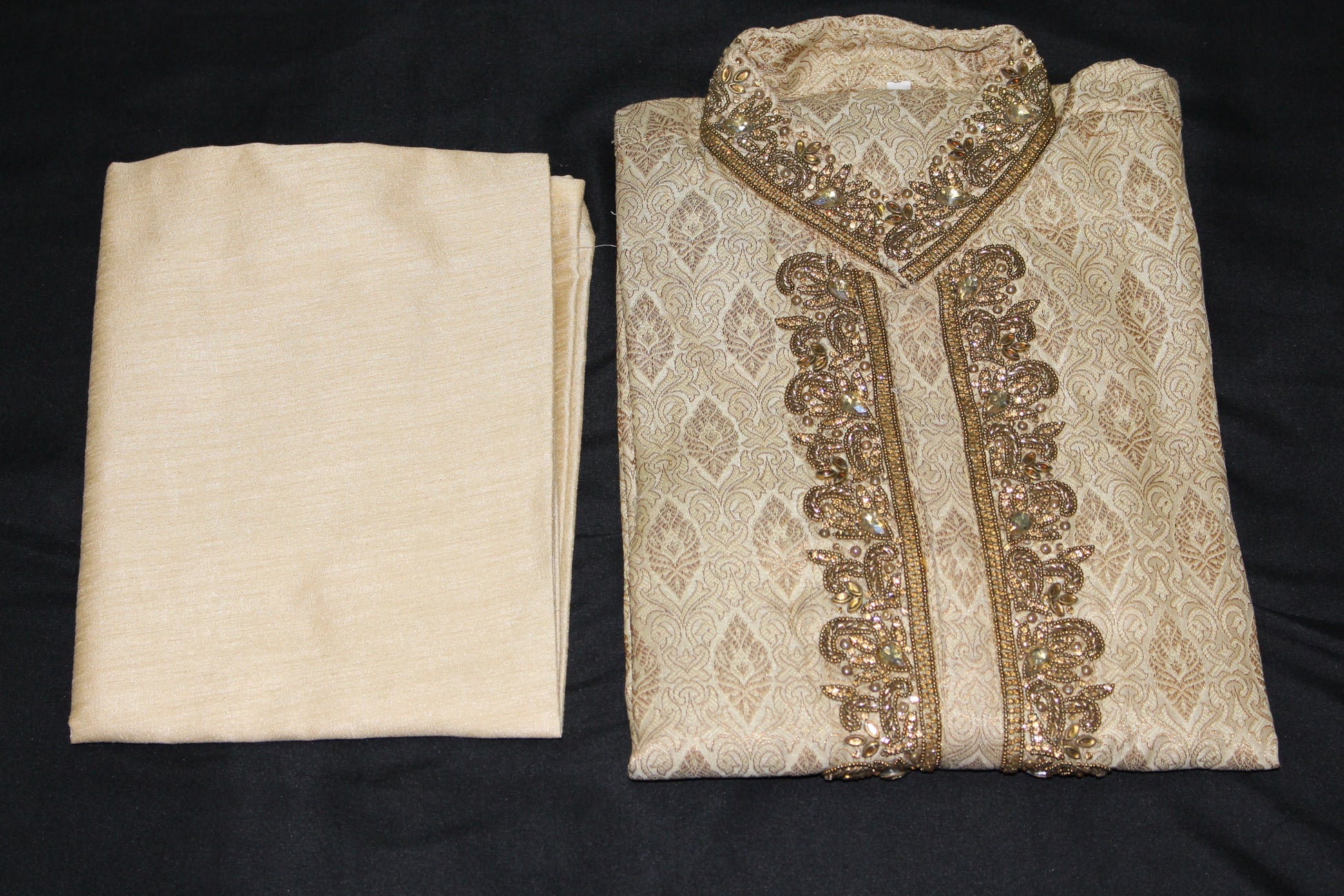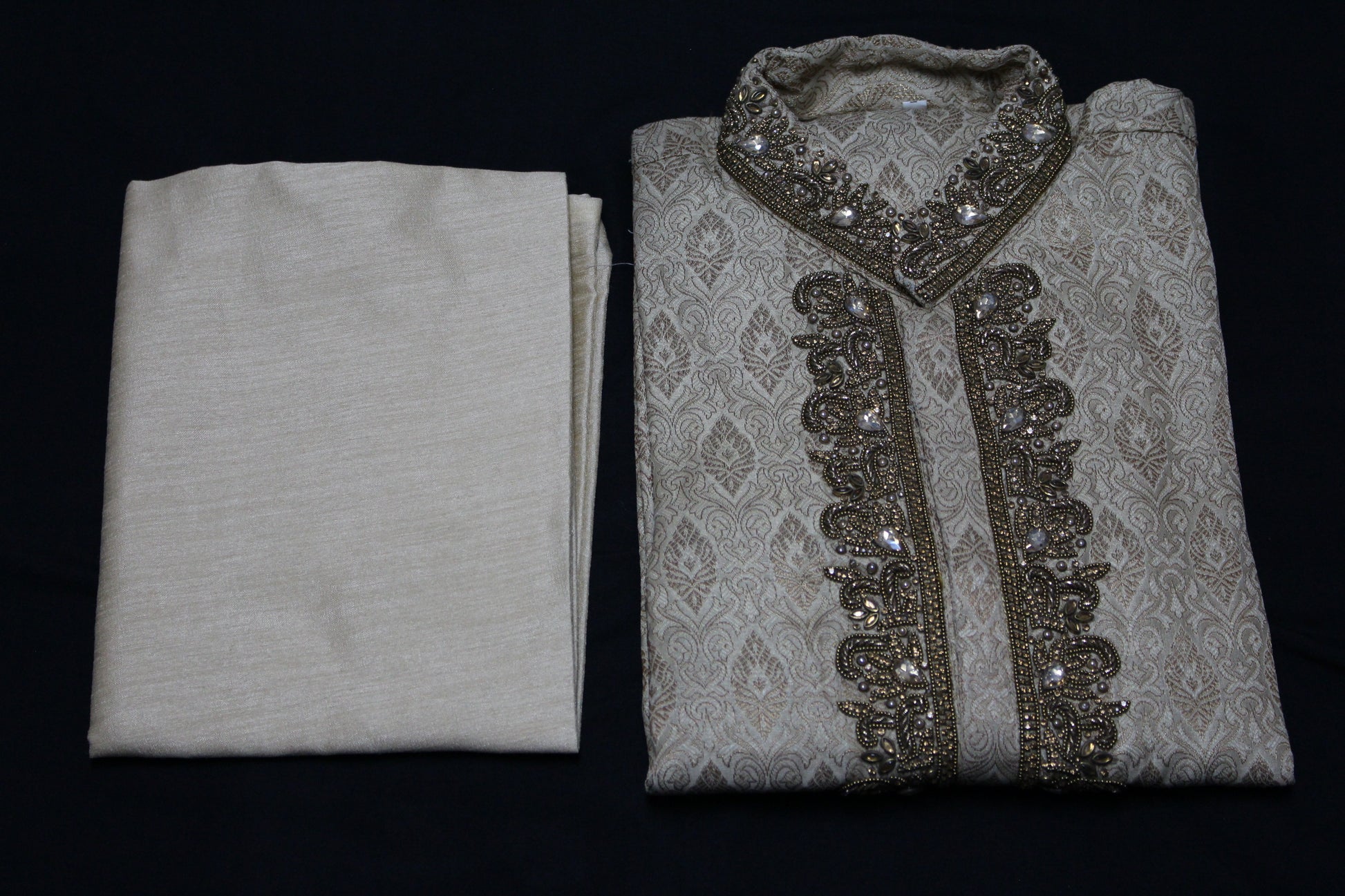 Bollywood Style Kurta Pyjama Set in Beige with Hand Embroidery