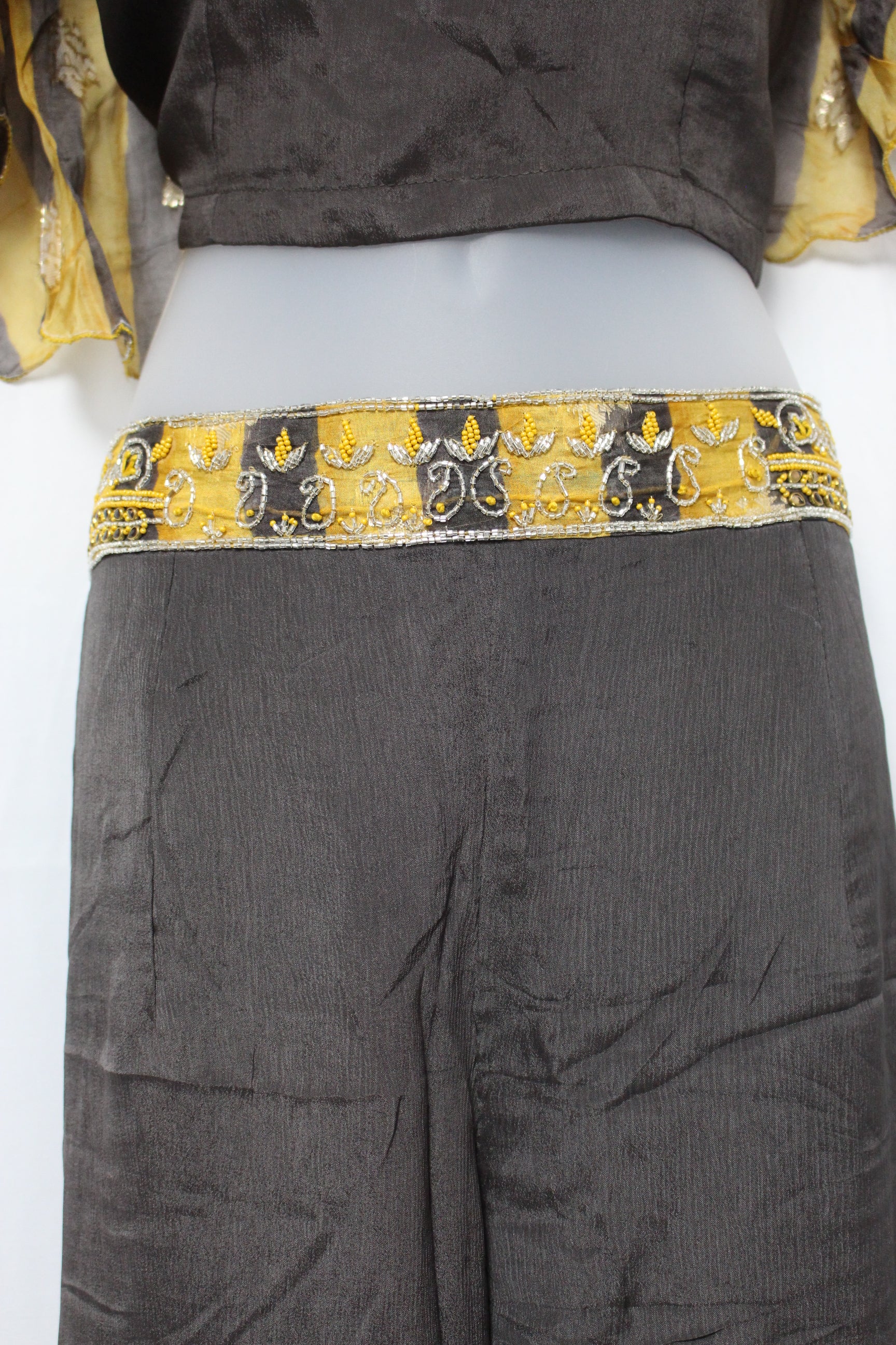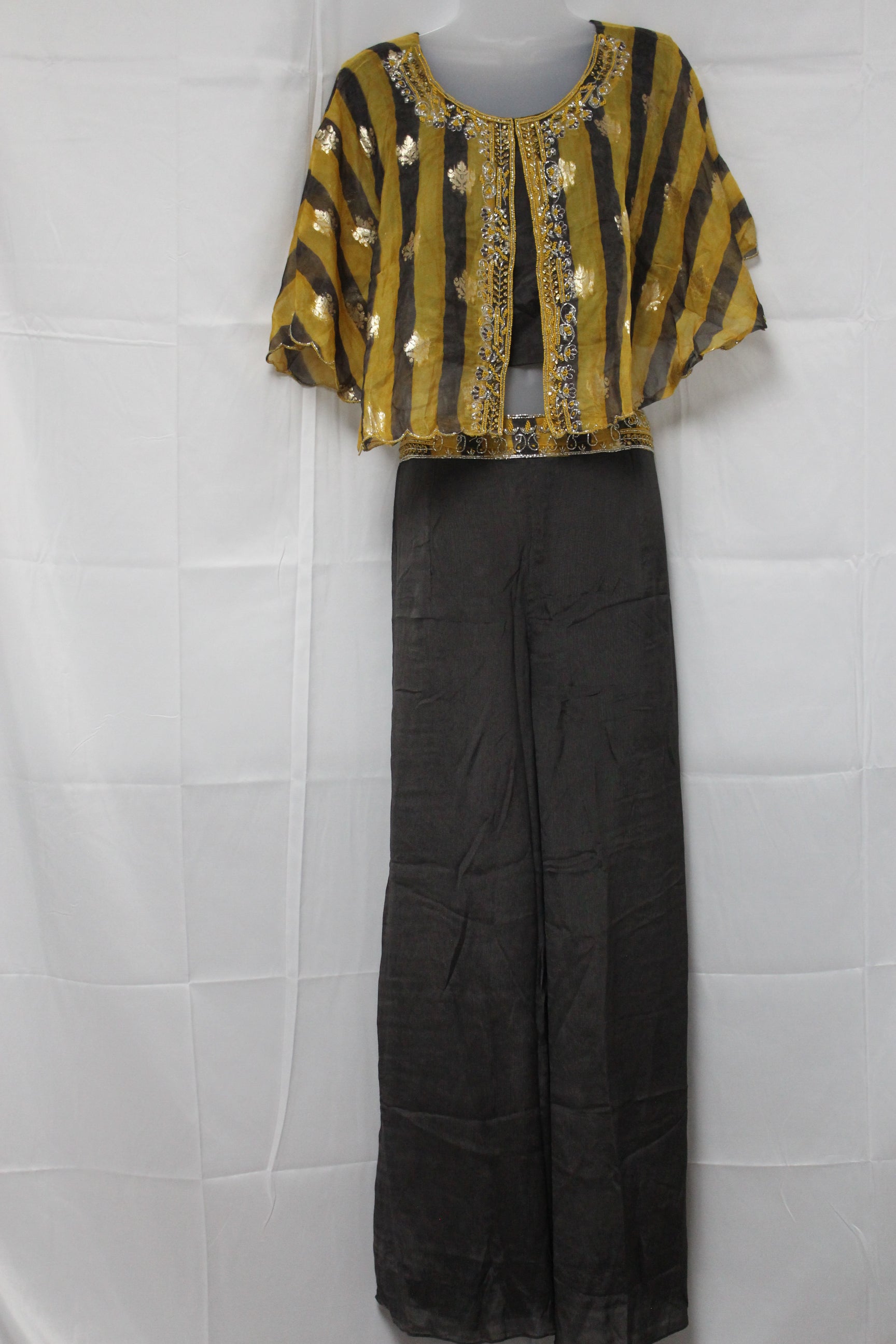 Brown & Mustard Embroidered Crop Top with Palazzo Pant