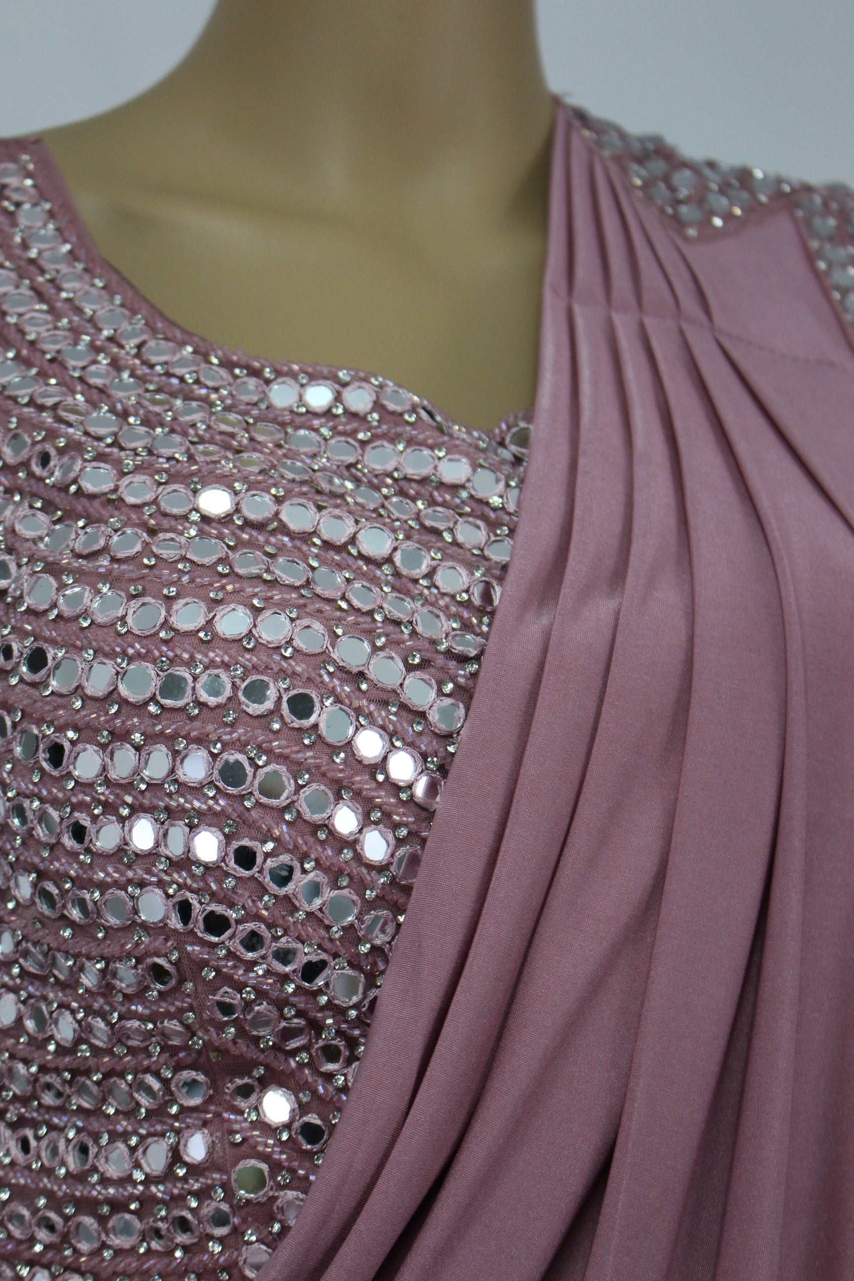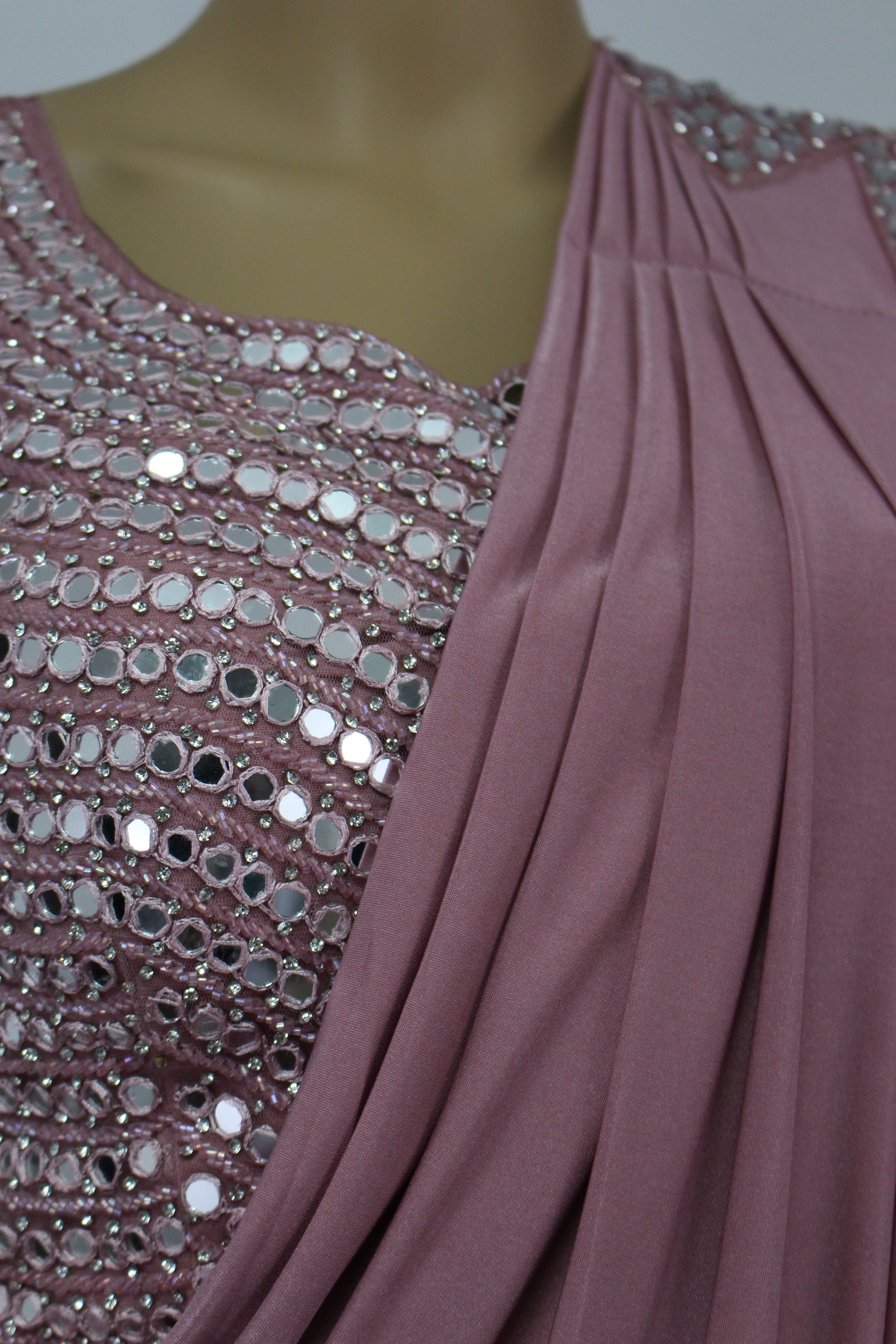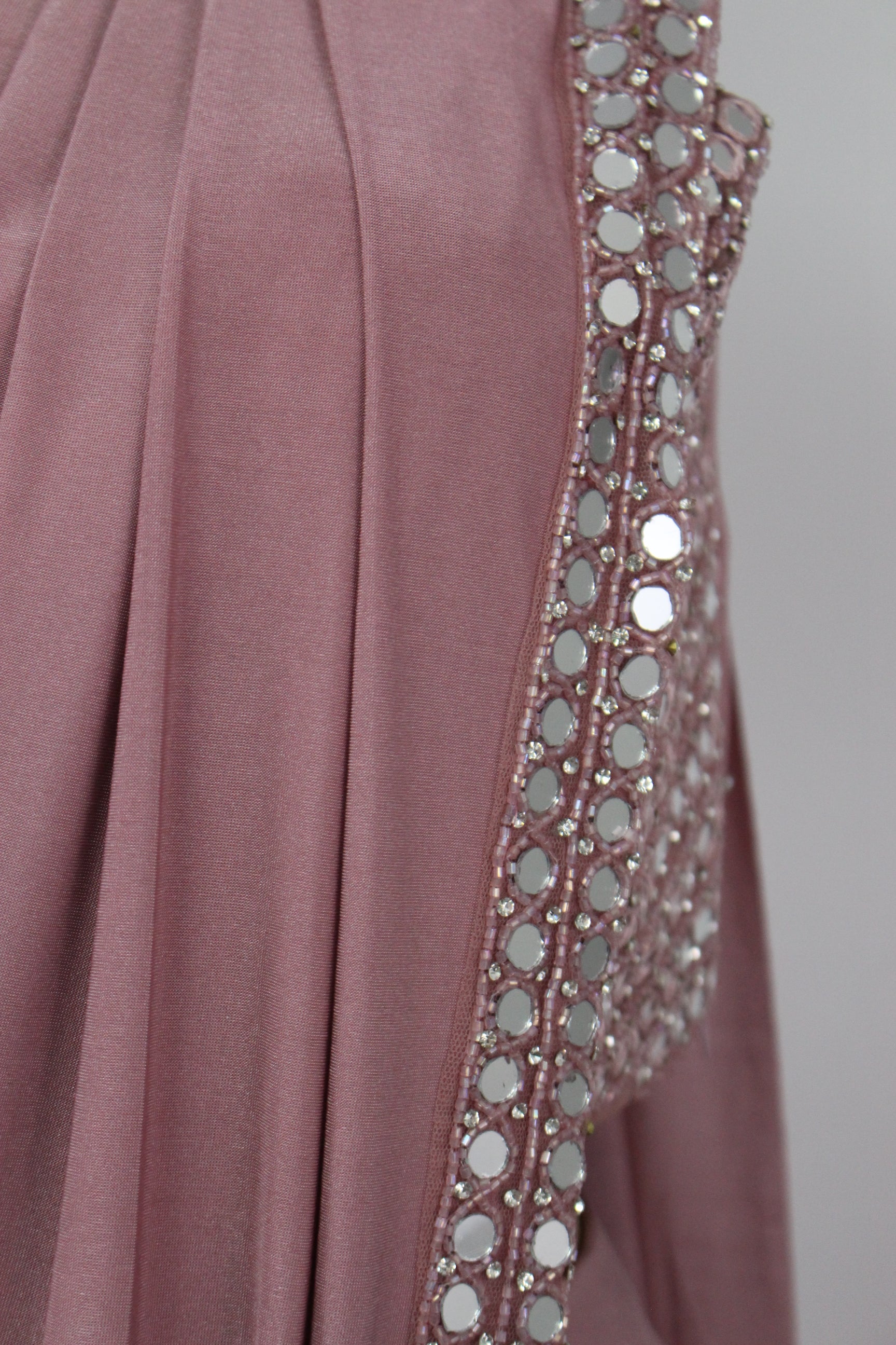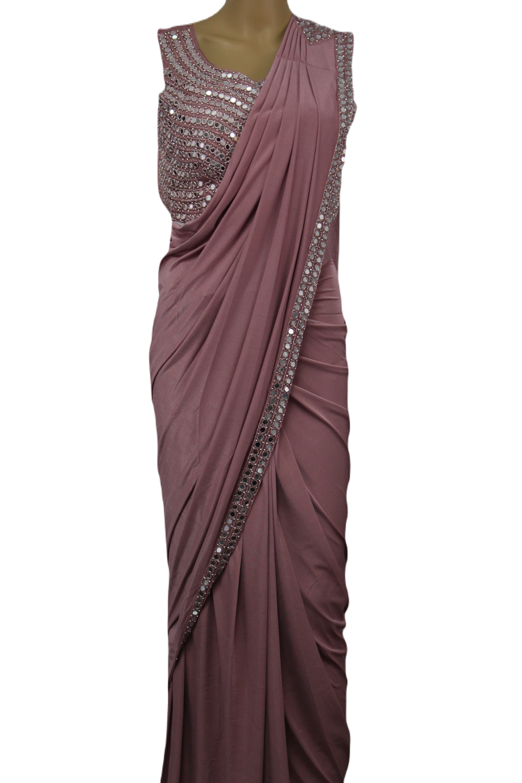 Dark pastel Pink Ready to Wear Saree with Mirror Crafted Handmade Blouse