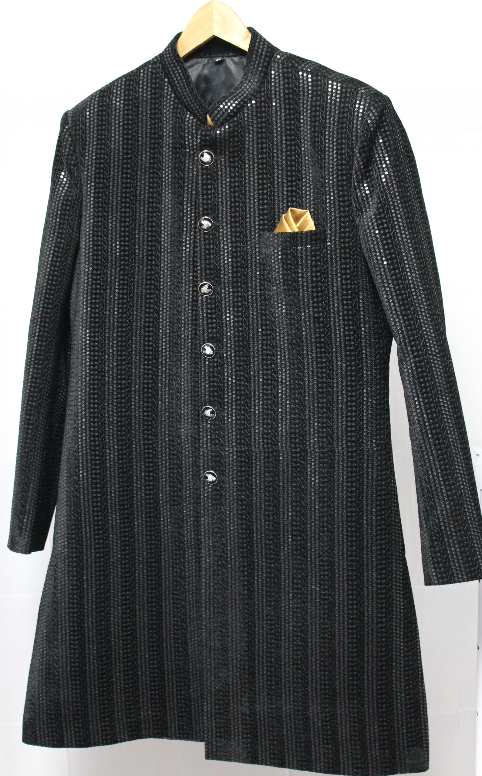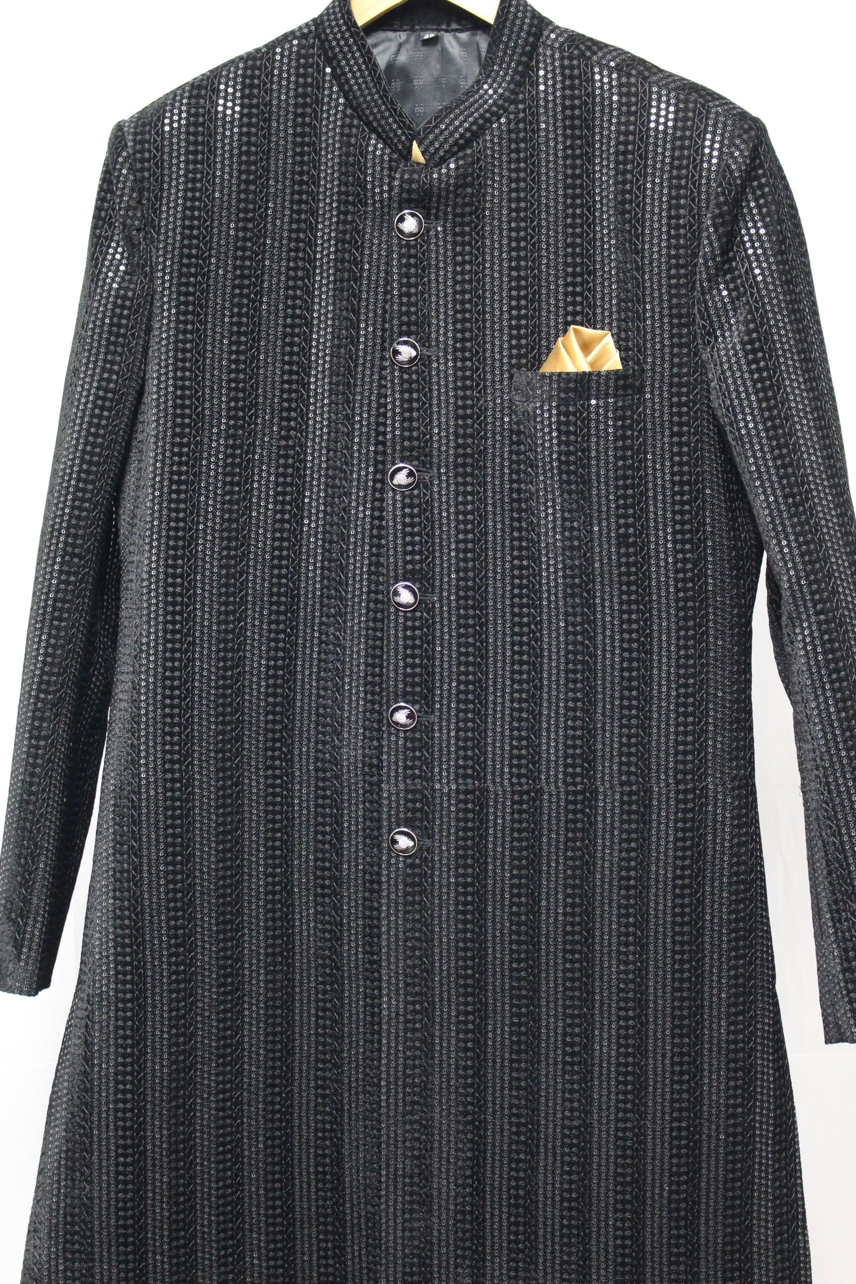 Elegantly Sequined Black Knee Length Suit (2 Piece)