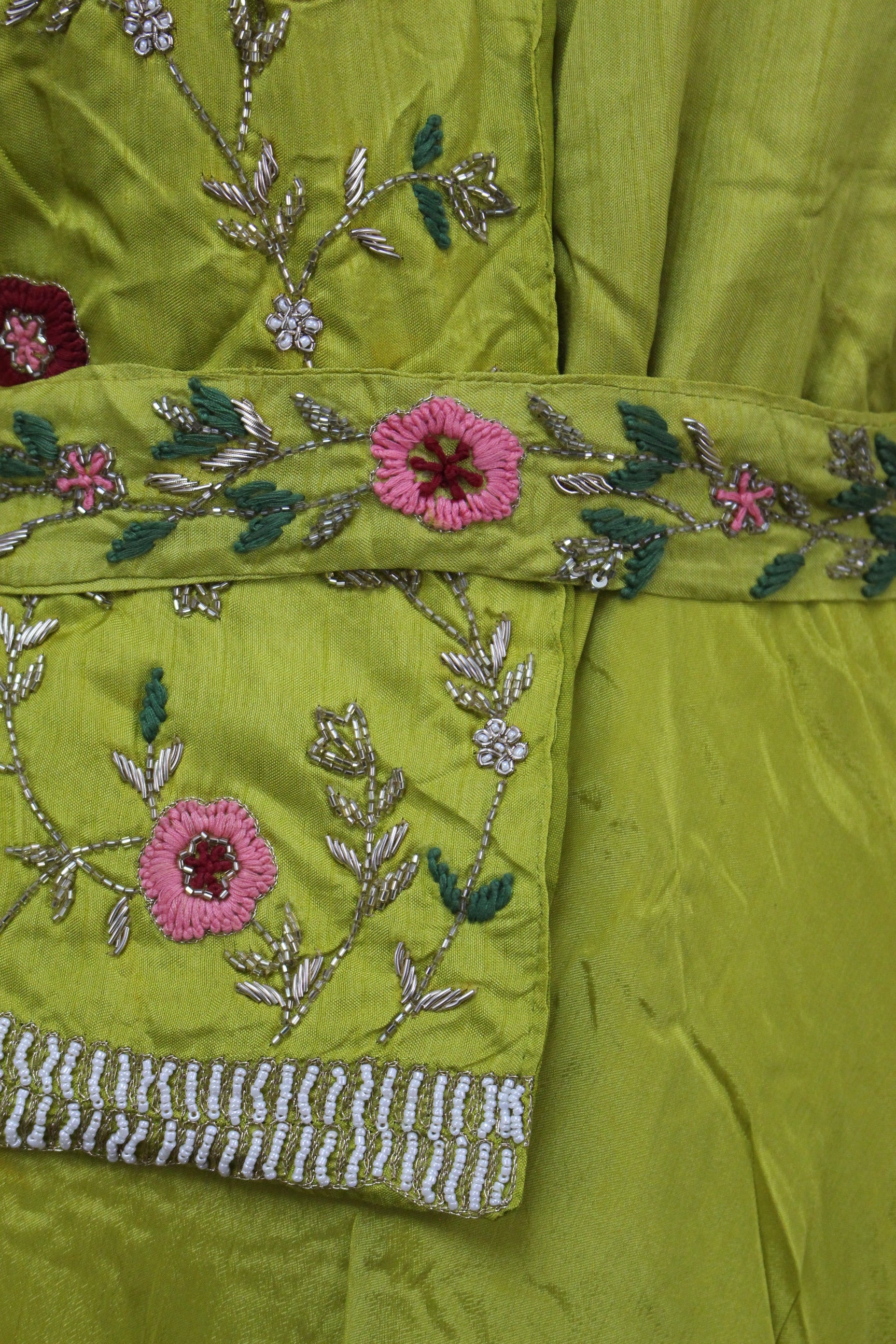 Hand Embroidered Chartreuse Maxi with Belt