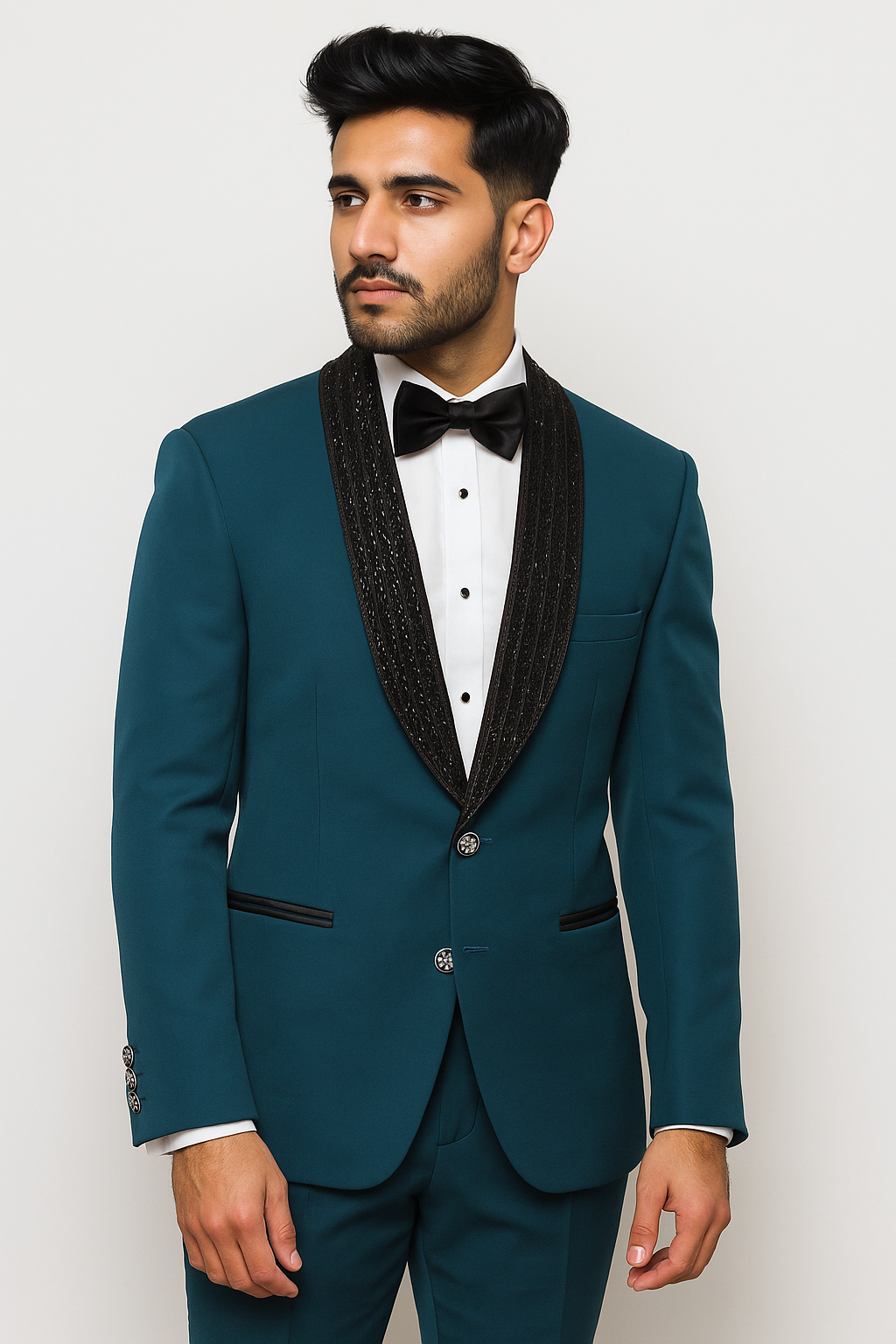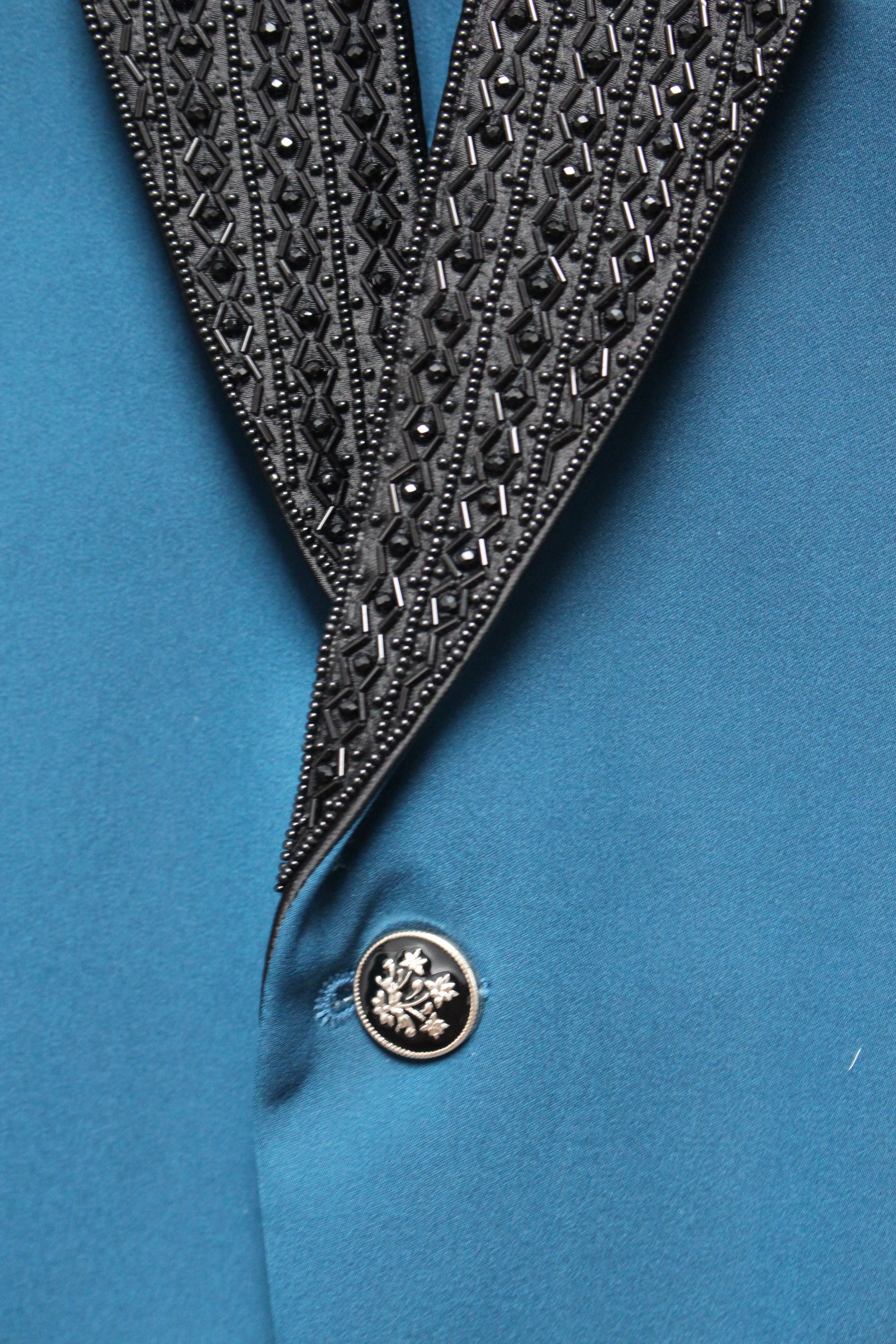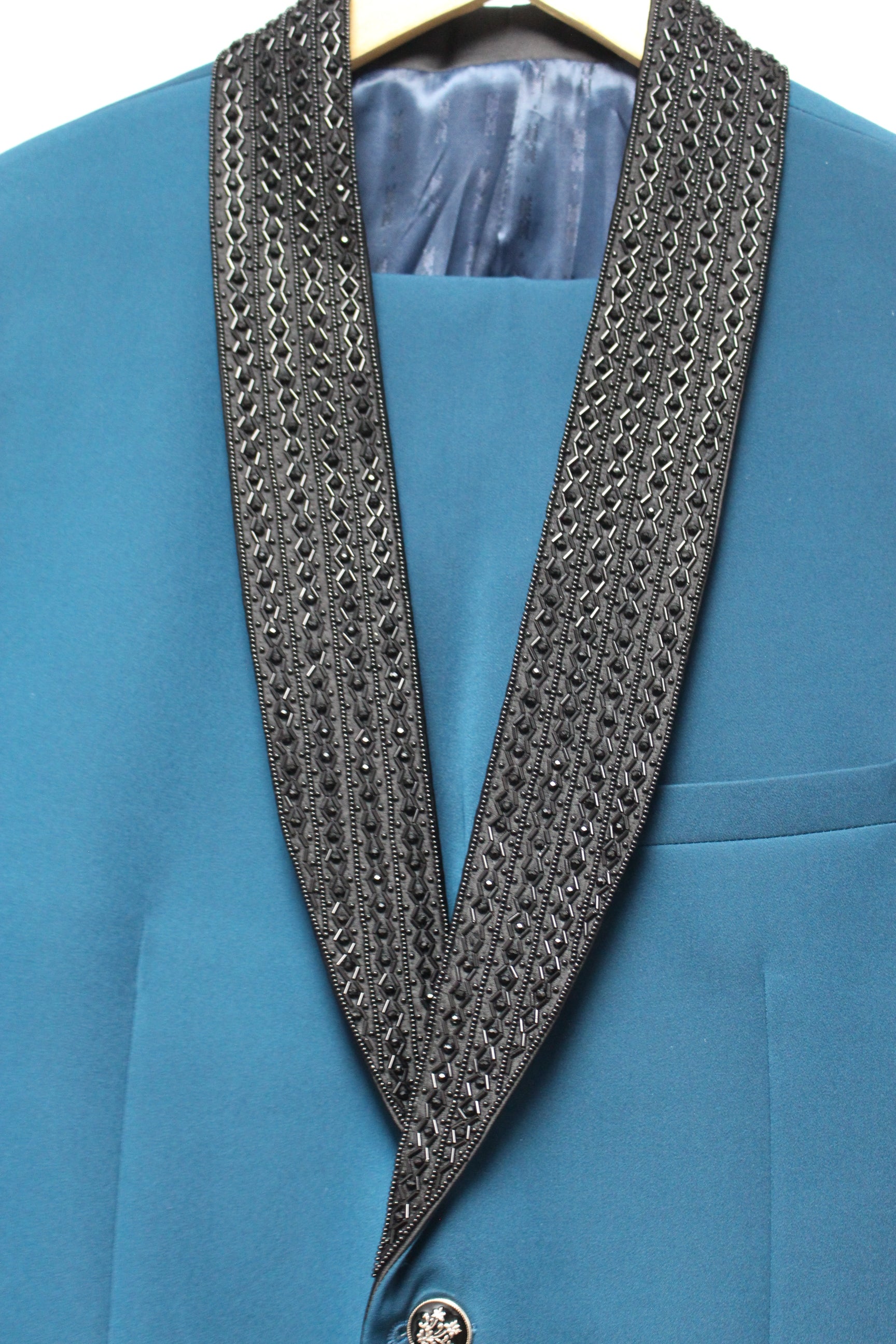 Japanese Silk Mixed Tux with Exquisite Hand Embroidery in Deep Teal