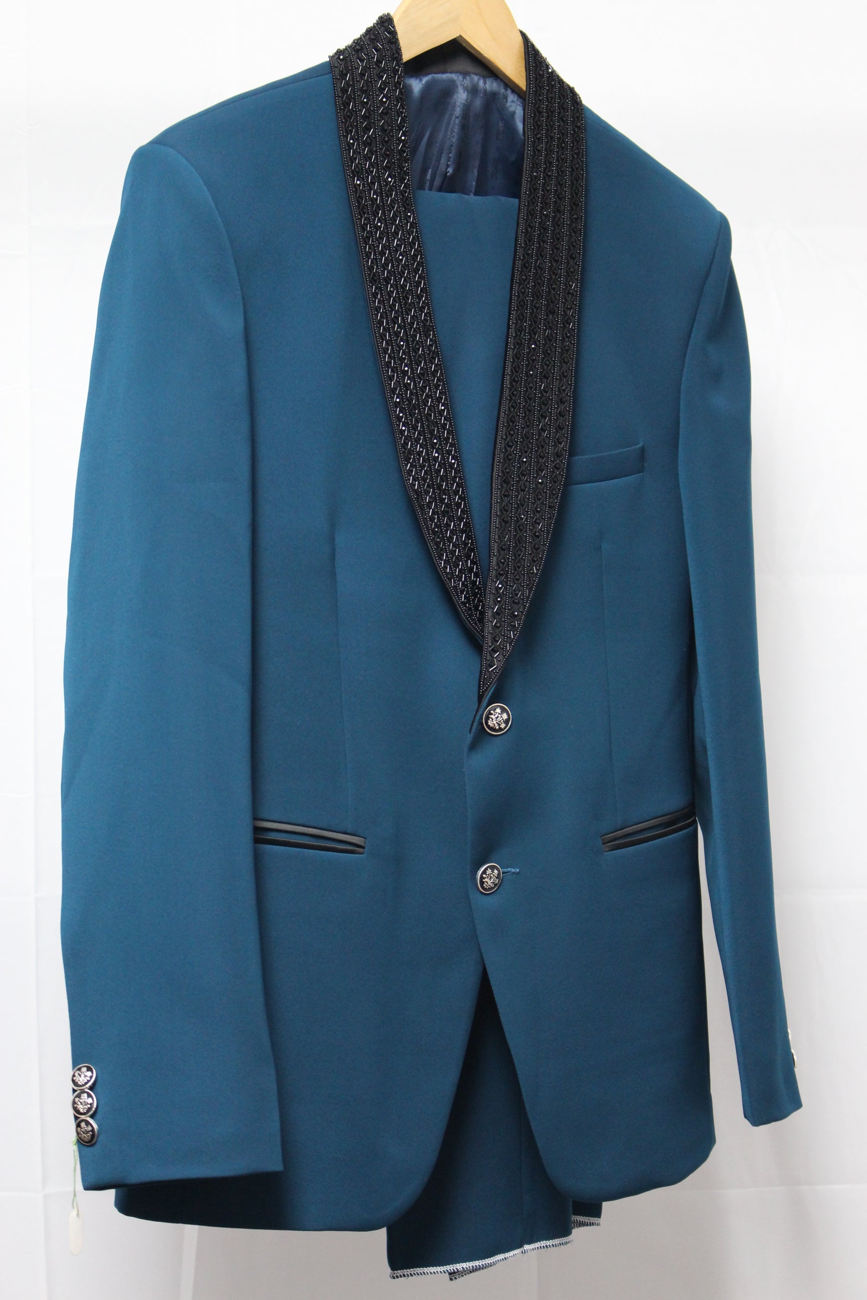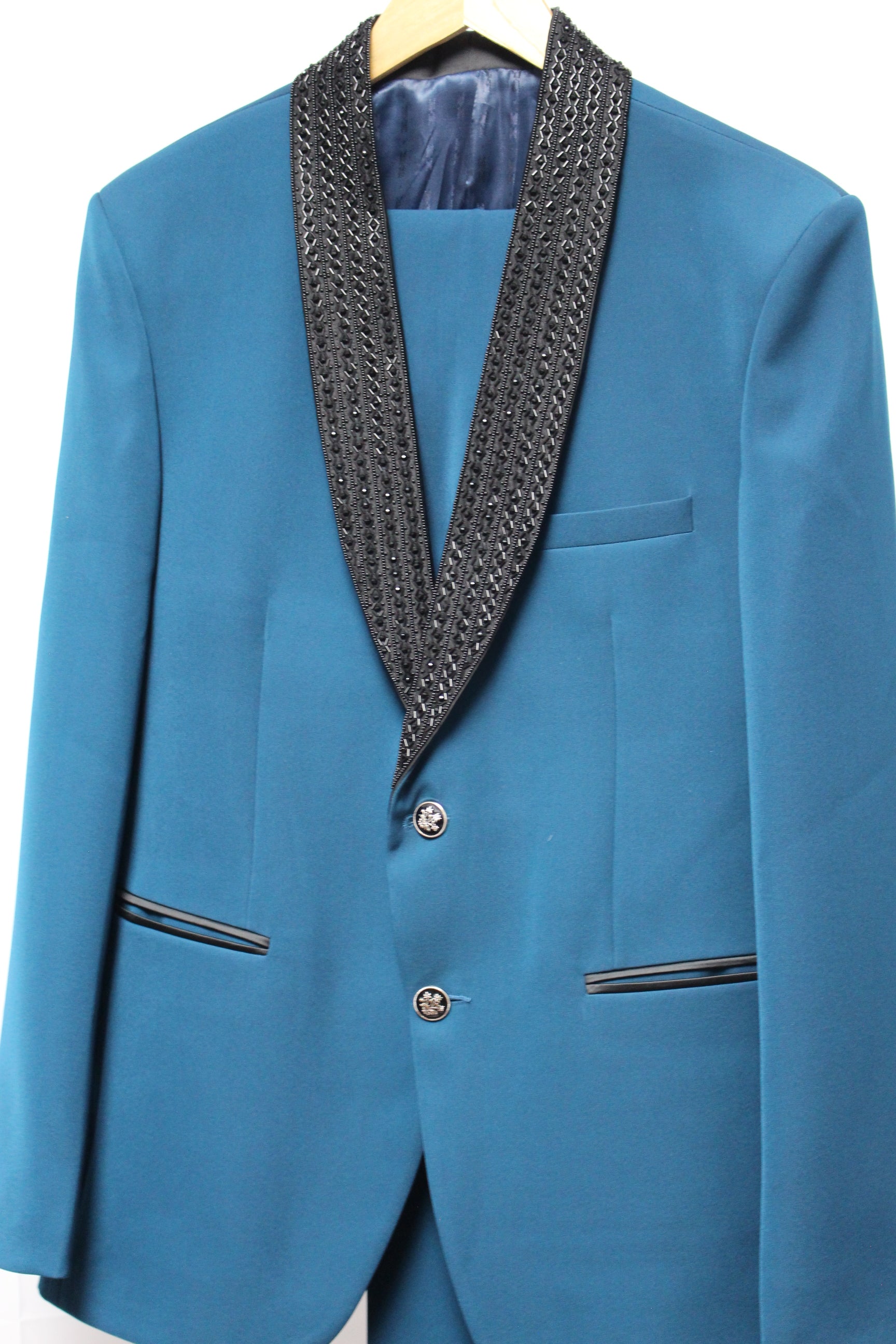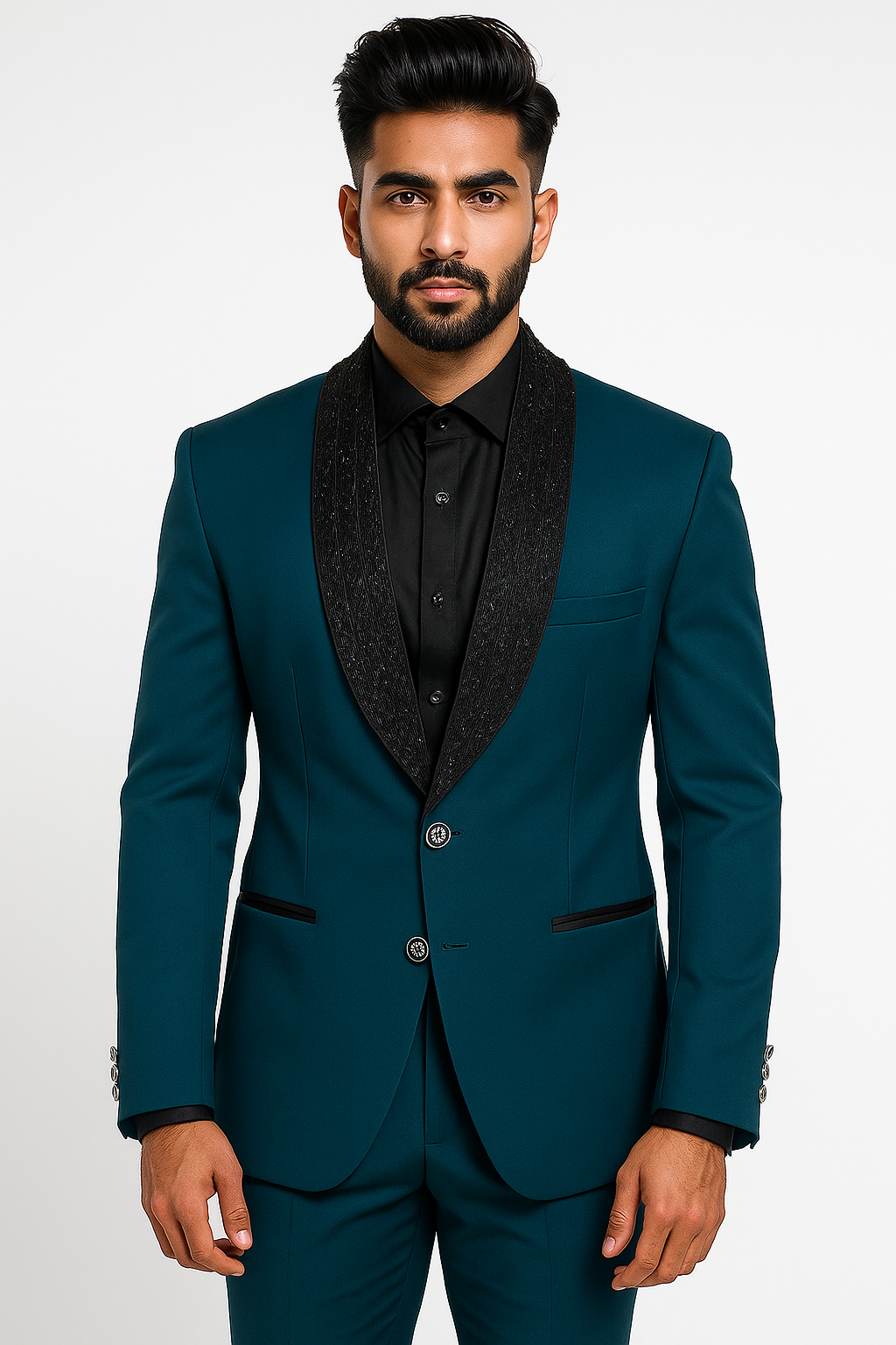 Japanese Silk Mixed Tux with Exquisite Hand Embroidery in Deep Teal
