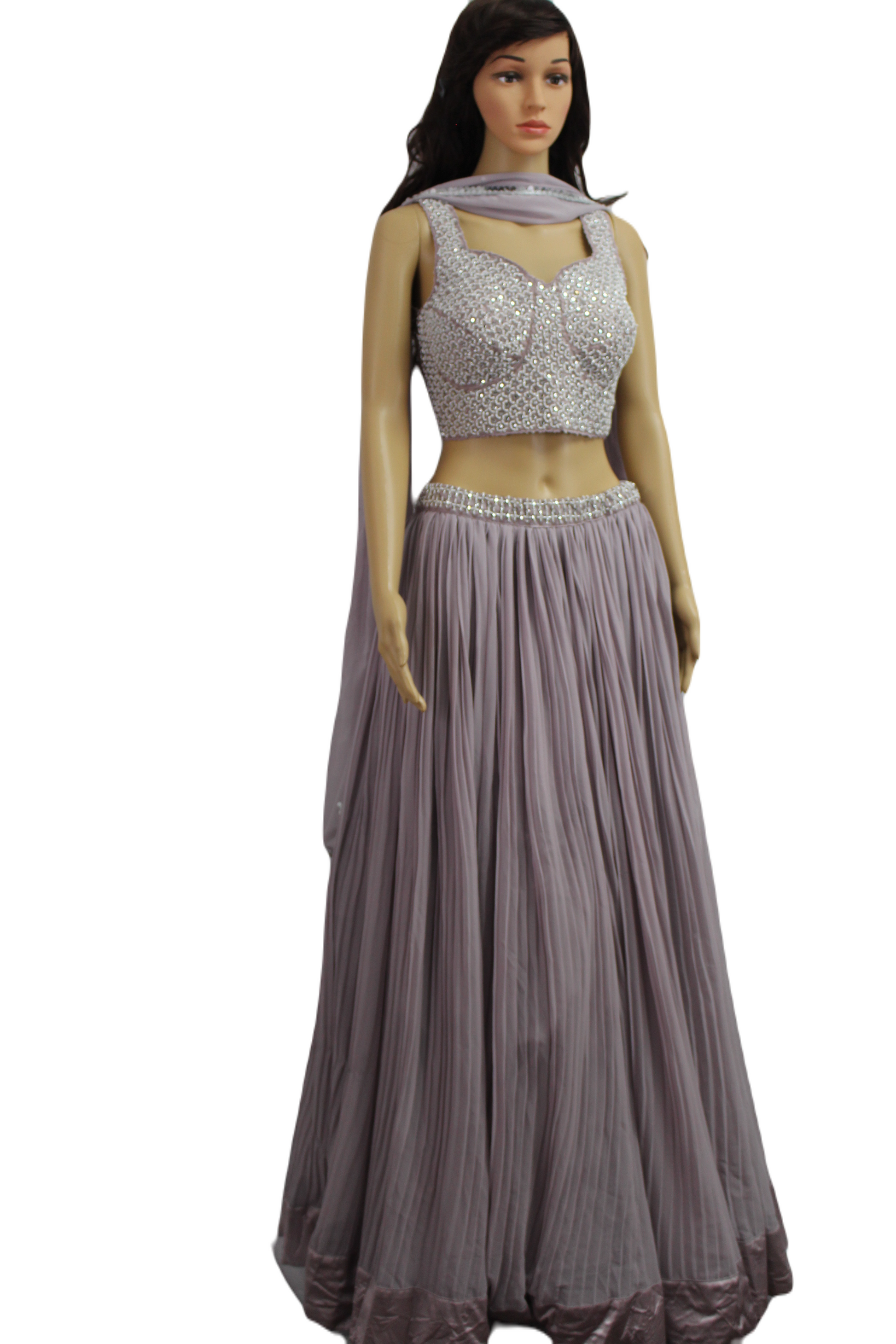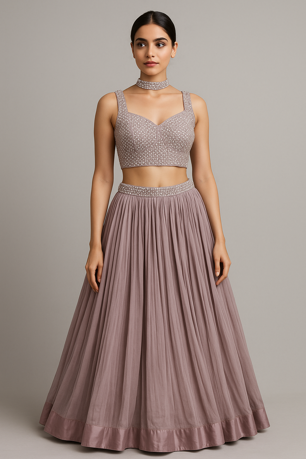 Mauve Shaded Handworked Fusion Crop Top with Exquisite Georgette Skirt