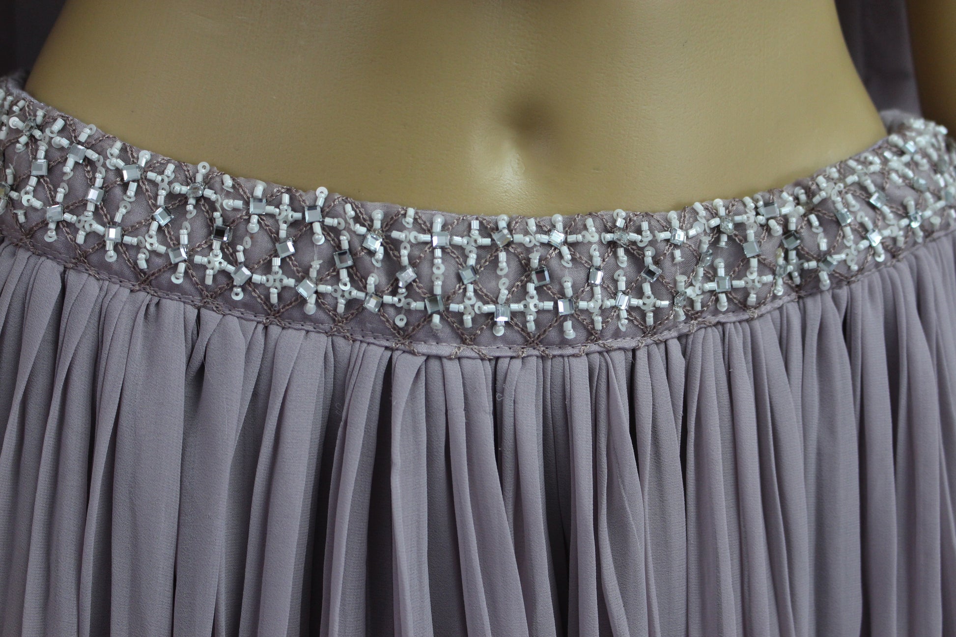 Add a punch of royalty to your wardrobe in this handmade crop top with georgette skirt with glass and bead embroidery.