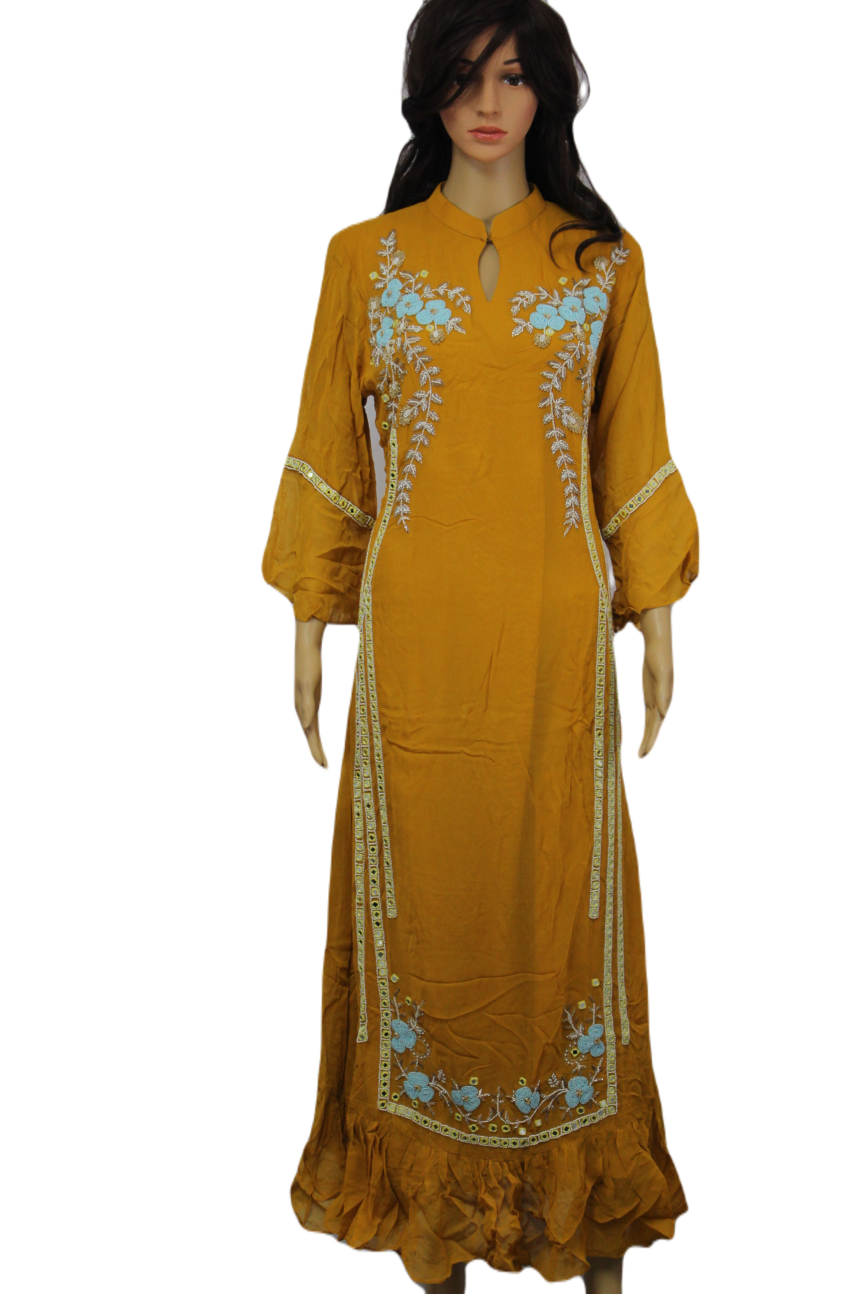 Mustard Georgette Maxi with Exquisite Hand Embroidery