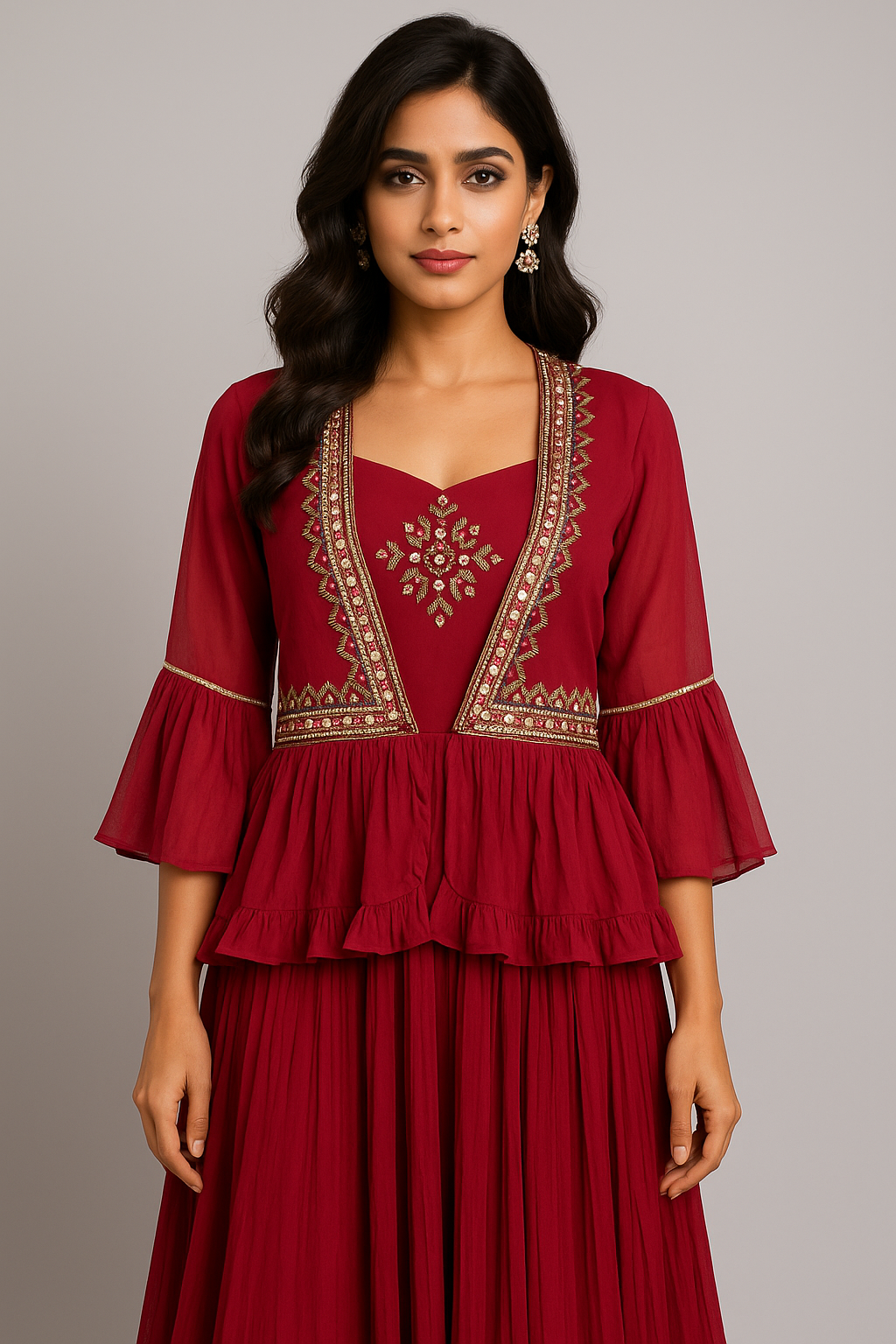 Simple and lovely gown that can be sported with or without the shrug.